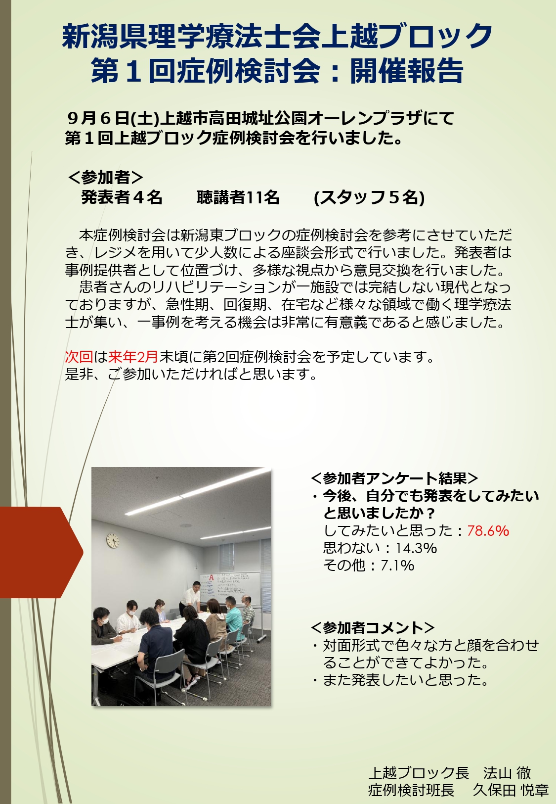 9月6日に高田城址公園オーレンプラザにて第1回上越ブロック症例検討会を行いました。
